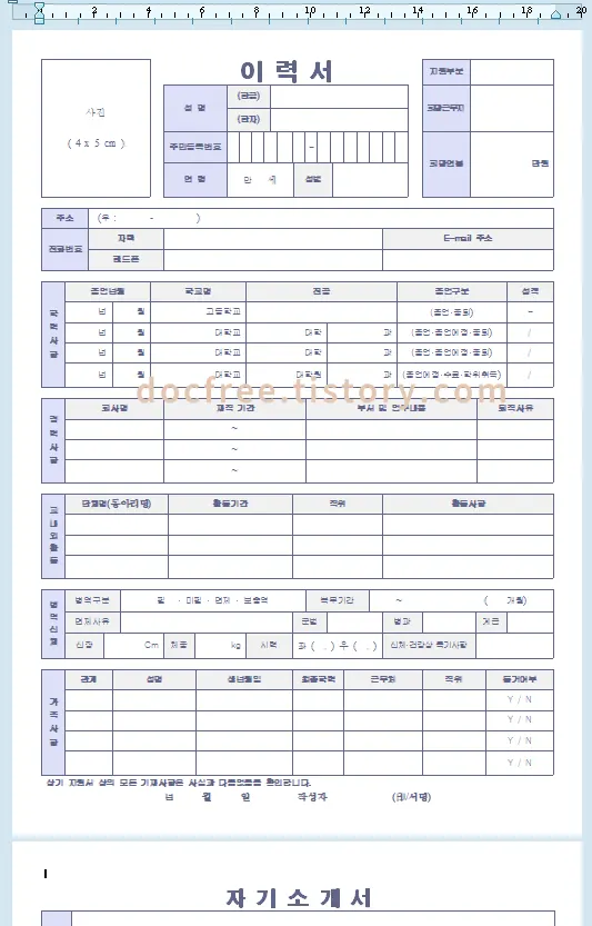 문구점에서 파는 양식 보다 상세히 작성할 수 있는 이력서 양식입니다. 보다 개성있는 이력서를 작성하여 제출하면 더욱 좋은 성과가 나타날 수 있다고 믿겠습니다. 이력서 잘 작성하셔서 좋은 결과 있길 기원해 봅니다. 아자아자 화이팅~!